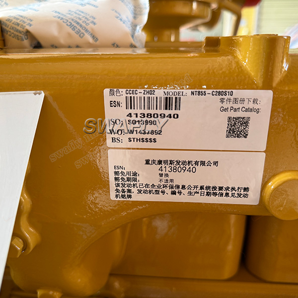 बुलडोजरसाठी कमिन्स सीसीईसी एनटी 855 -सी 280 तक्रार इंजिन असेंब्ली 6 - सिलेंडर इनलाइन, 14 - लिटर चार - स्ट्रोक इंजिन आहे. यात 140 मिमी (5.5 इंच) बोअर आणि 152 मिमी (6.0 इंच) चे स्ट्रोक आहे. हे एनटी 855 - सी 280 औद्योगिक इंजिन पीटी इंधन प्रणालीसह सुसज्ज आहे आणि टर्बोचार्जरसह येते. 1800 आरपीएम वर, त्याची मुख्य शक्ती 240 एचपी (175 किलोवॅट) आहे. इंजिन 1400 आरपीएम वर 1050 एन · मी (750 एलबी · फूट) च्या कमाल टॉर्कपर्यंत पोहोचते.
